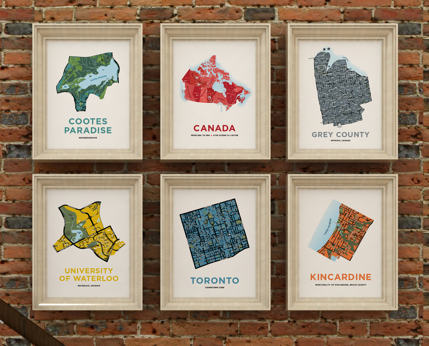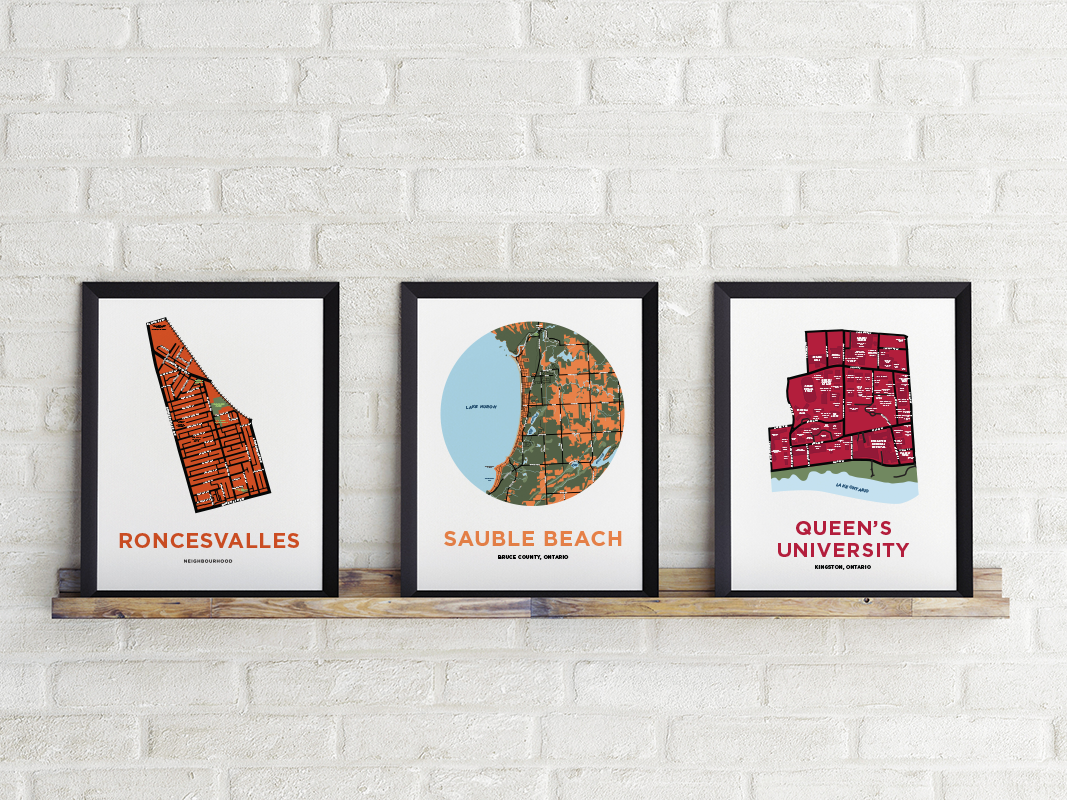We have helped many couples create a collection of maps for their home. They often choose to display a map of where each partner grew up, and a map of where they live now, or where they first met.
