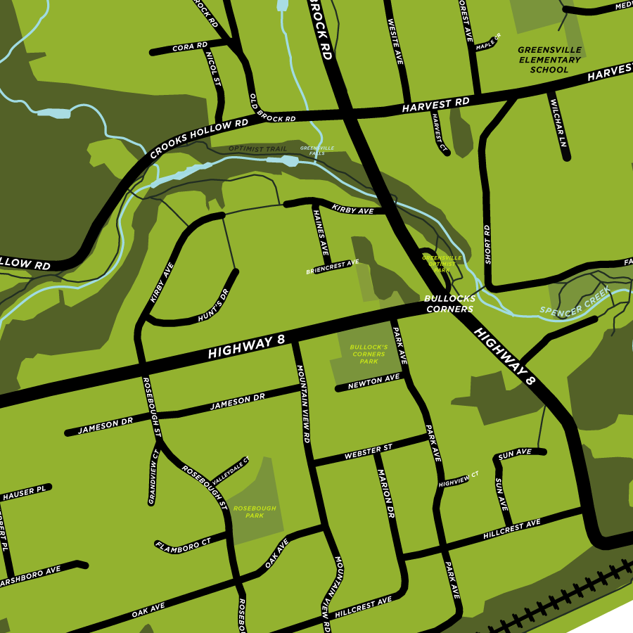 This is a map of Greensville. It's part of the former town of Flamborough, now part of Hamilton.