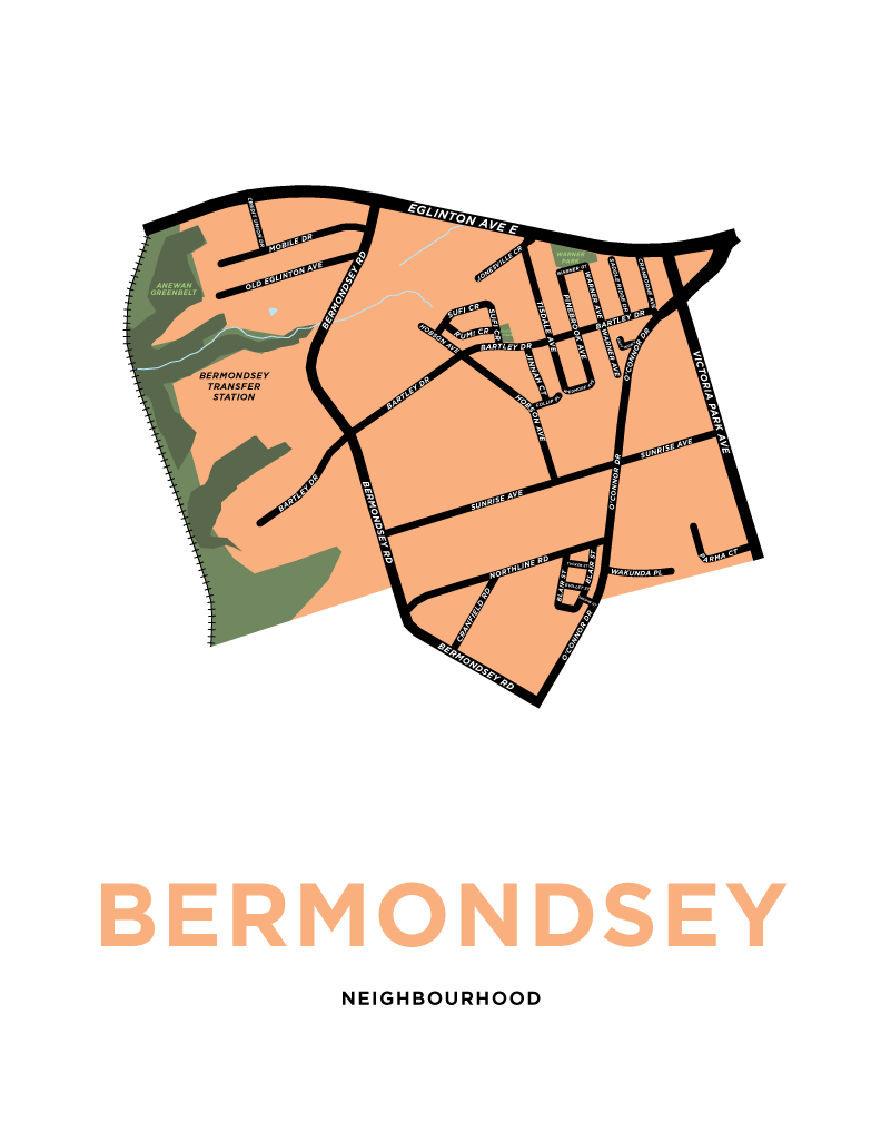 Bermondsey is bordered roughly by Eglinton Ave East, Victoria Park Avenue, Northline Road and the Don Valley Rail line.